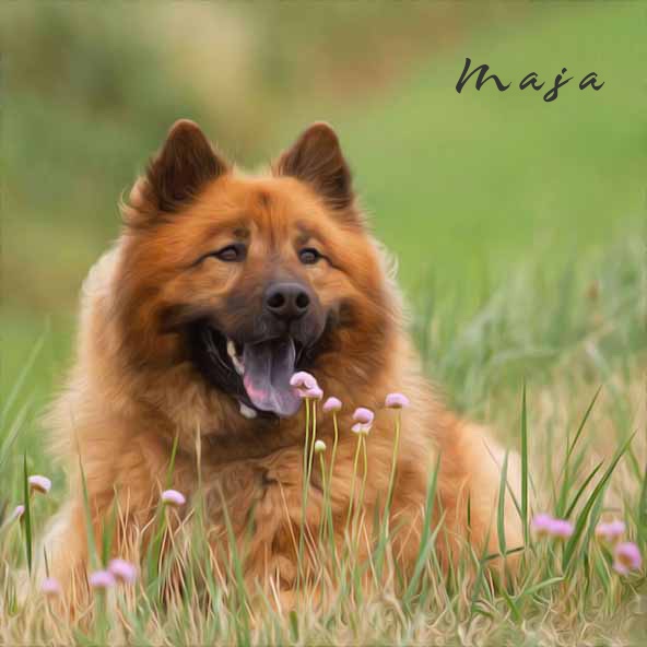 Der Eurasier hat als Grundfarben - reinschwarz, schwarz mit helleren Abzeichen, rot mit heller oder dunkler Maske, falben und wolfsgrau. Dann gibt es auch noch die schönen Farbnuancen der Grundfarben - wie wolfsfarben, wildfarben, rotfalben.