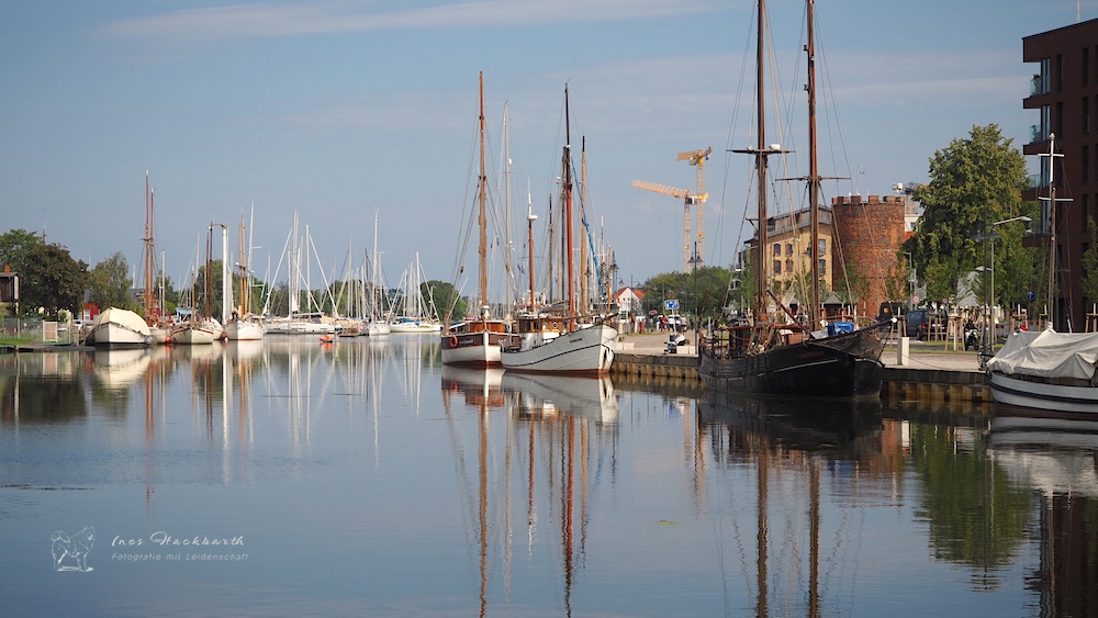 Greifswald hat sogar zwei Seglerhafen - einen im Stadtteil Wieck, wo es eine Holländische Holzzugbrücke gibt, die die Stadtteile Wieck und Eldena verbindet, wo das Segelschulschiff "Greif" vor Anker liegt.